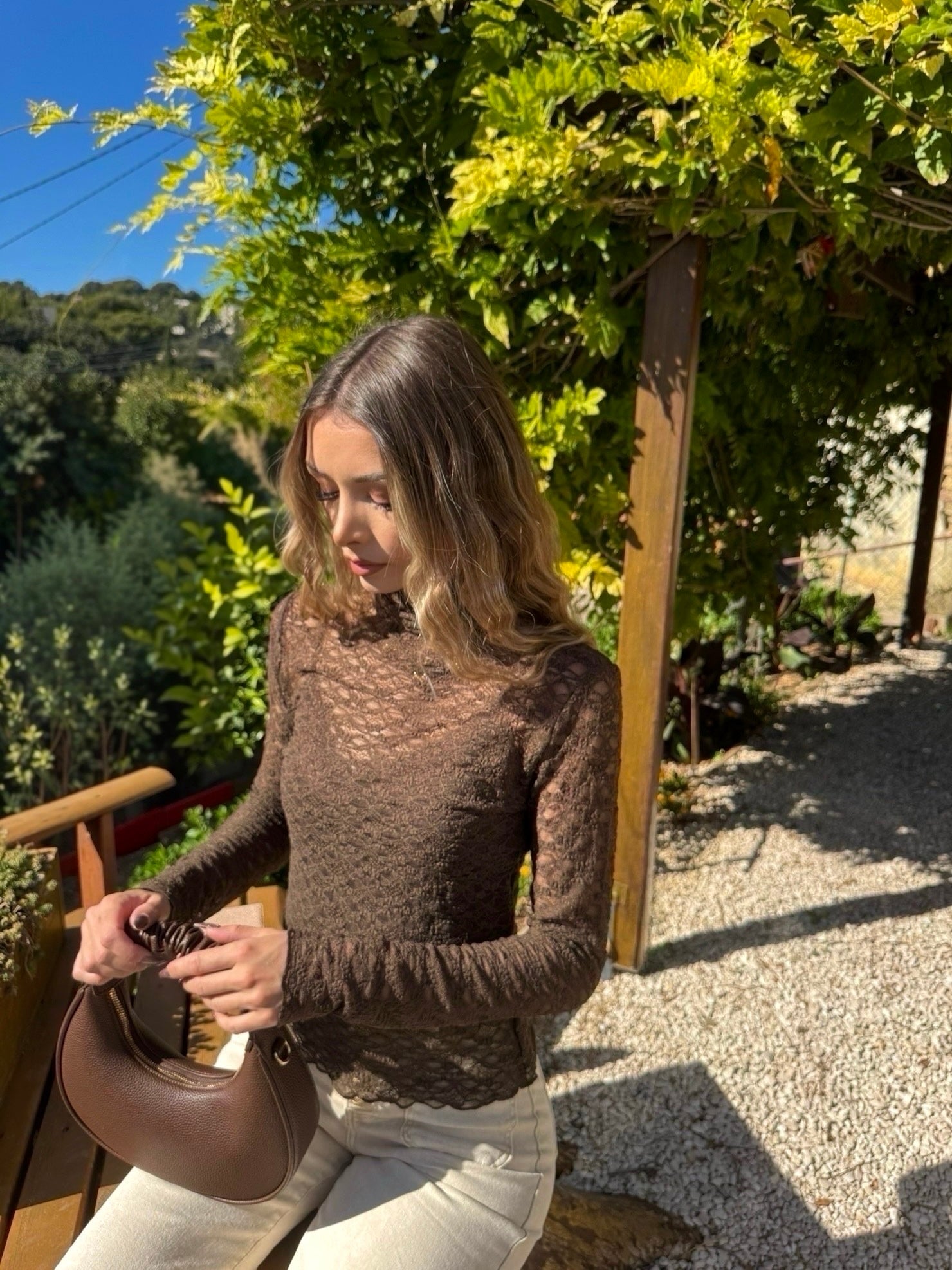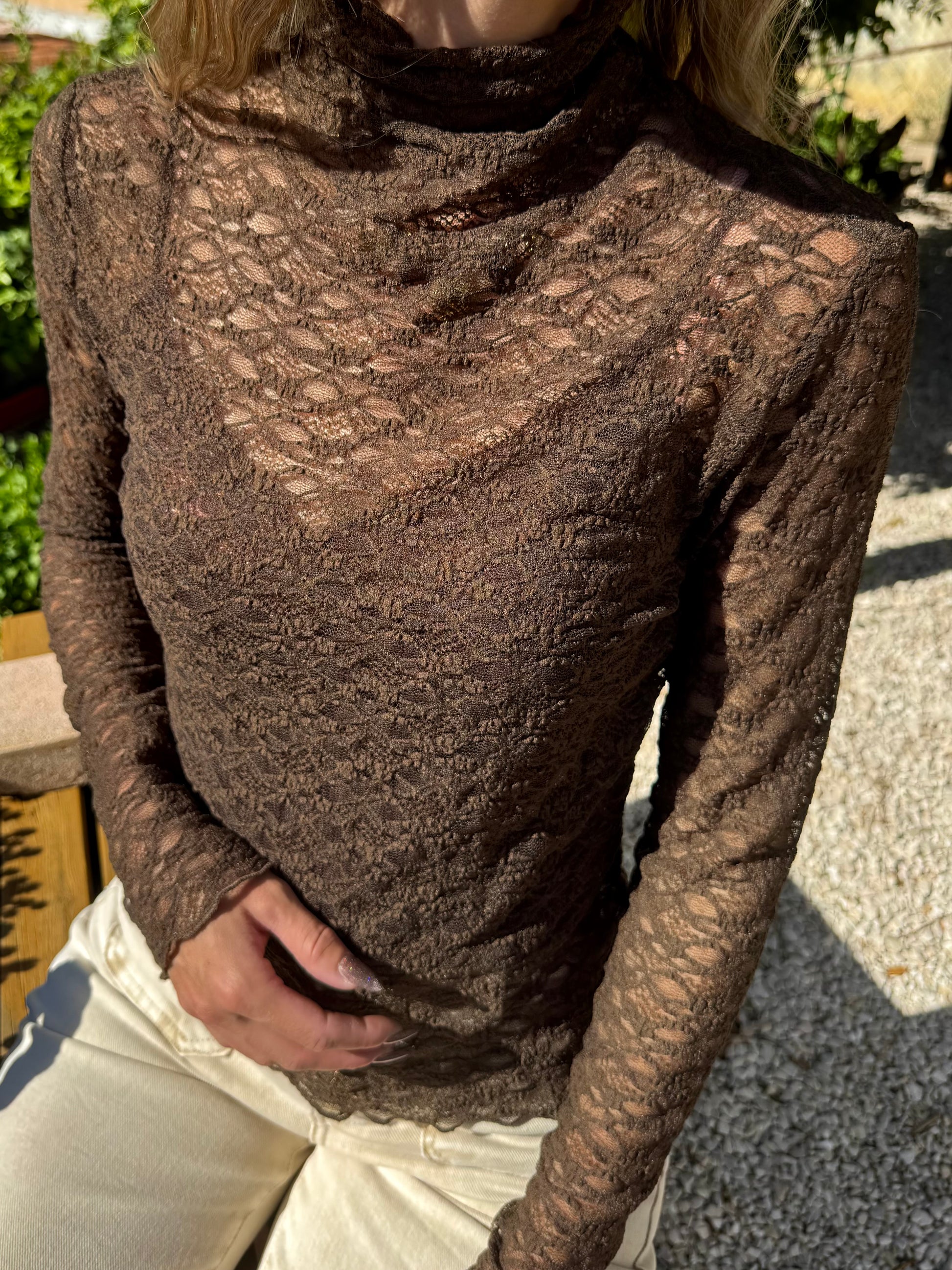 Ce top en dentelle fine épouse les courbes comme une seconde peau. Près du corps, délicatement transparent, il joue sur l'équilibre parfait entre sensualité assumée et sophistication discrète. Les détails de la dentelle dessinent la silhouette avec élégance, pour une allure à la fois féminine et affirmée. Associez-le à notre débardeur « Caval » pour un jeu de contrastes subtil entre opacité et transparence — un duo à la fois audacieux et raffiné.