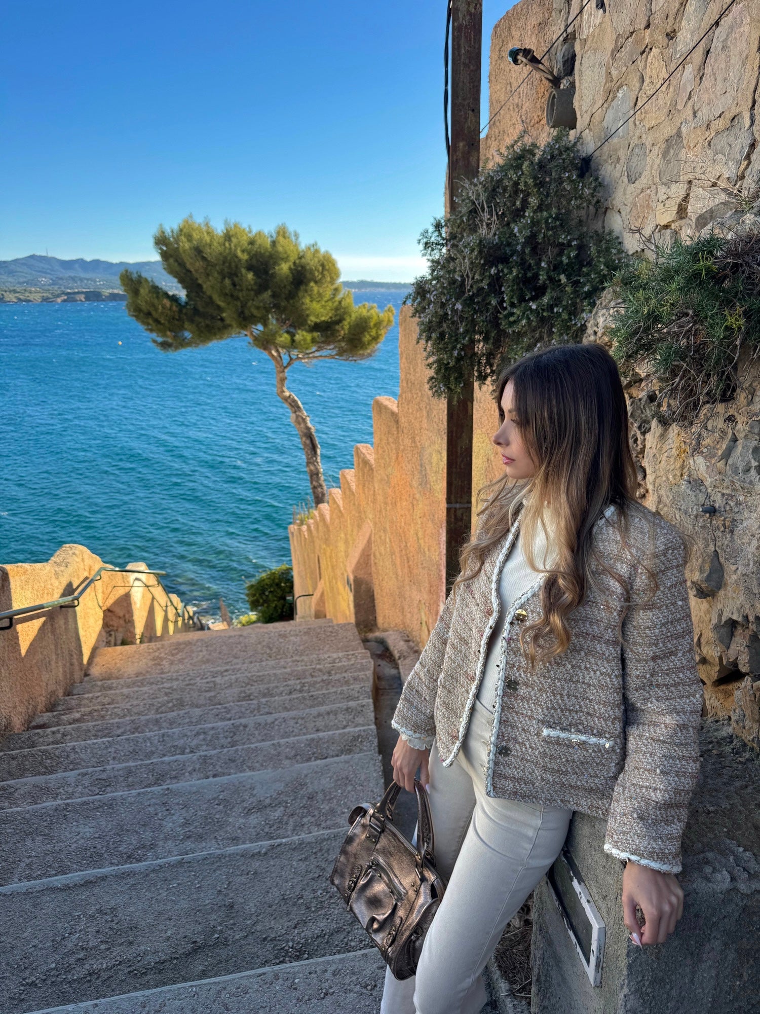 Cette veste habillée revisite l’esprit couture avec une allure moderne. Confectionnée dans une belle texture tissée, elle se distingue par ses fils fantaisie subtilement incrustés, qui apportent relief, caractère et sophistication à chaque mouvement. La coupe, à la fois structurée et féminine, met en valeur la silhouette, tandis que les jolis boutons travaillés, façon bijoux, ajoutent une touche d‘originalité. Parfaite pour un look chic et maîtrisé, cette veste est l’alliée idéale pour sublimer une tenue élégante, que ce soit pour une occasion spéciale ou pour apporter une note raffinée au quotidien.